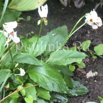 Достаточно редкий вид Додекатеона. Цветки белые, слегка возвышаются над округлой розеткой листьев. Высота не более 10-15 см. Для полутенистых мест.
